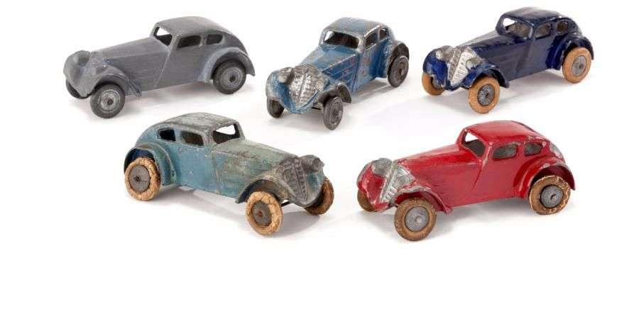 Cinq Coachs avec pneus (x 3) et roues métal (x 2).