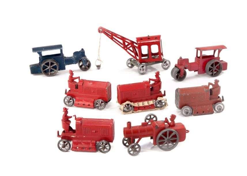 Divers véhicules et engins agricoles, tels que tracteur à vapeur, chenillard, rouleau compresseur - grue (8 p.).