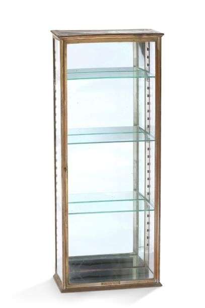 Vitrine en laiton doré à trois étagères en verre, intérieur à fond de glace.