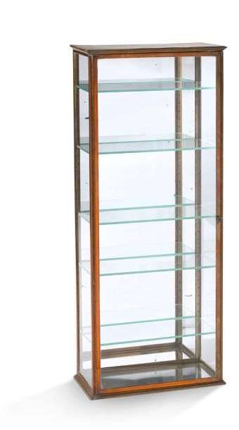 Vitrine rectangulaire en métal à cinq étagères en verre, intérieur à fond de glace.