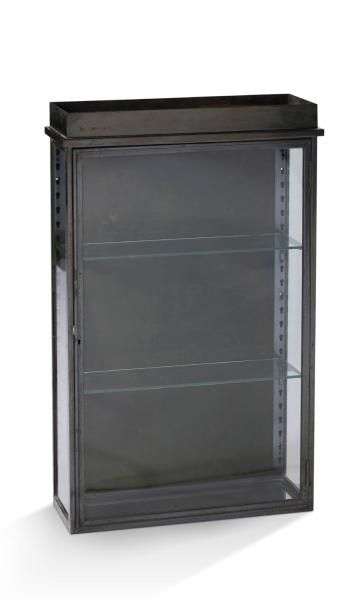 Petite vitrine murale rectangulaire en acier type industriel patinée noir.