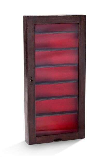 Petite vitrine murale rectangulaire en bois à six étagères.