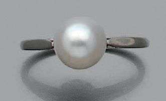 Bague en PLATINE (950) ornée d'une perle fine bouton.