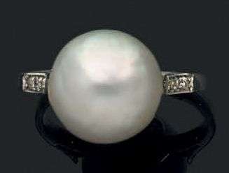 Bague en platine (950) ornée d'une perle supposée fine - non testée, épaul