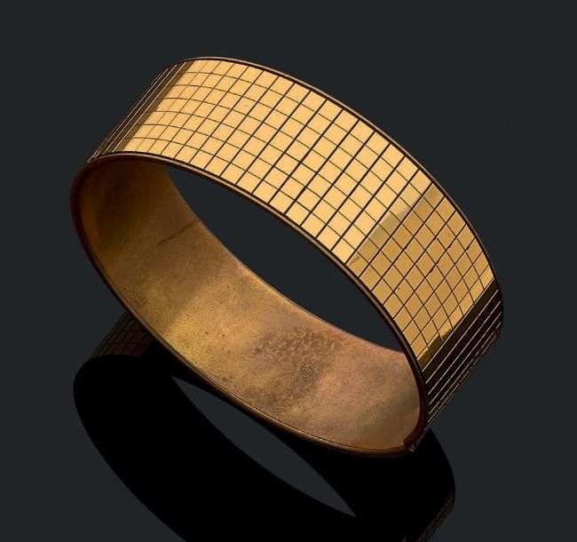 Bracelet " Irradiant " composé d'un jonc rigide à décor d'une mosaïque dorée.