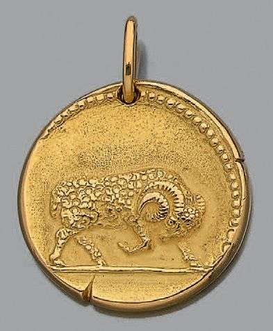 Breloque en or jaune 18K (750) représentant le signe du bélier.