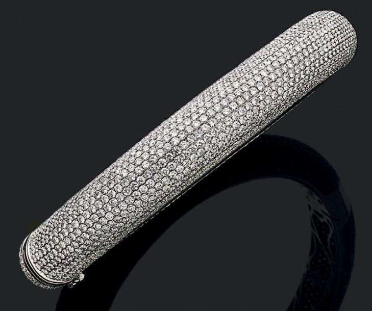 Bracelet "jonc" en or gris 18K (750) entièrement serti de diamants de tail