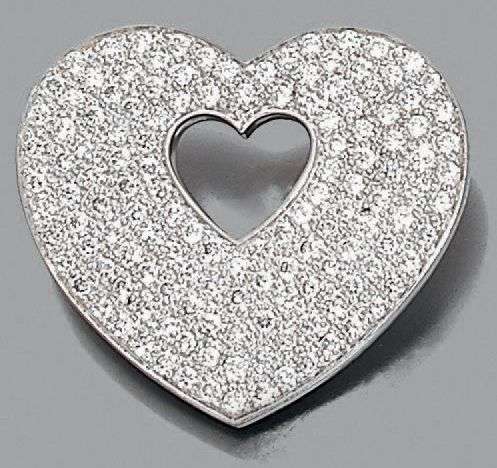 Pendentif "Coeur secret" en or gris entièrement pavé de diamants.