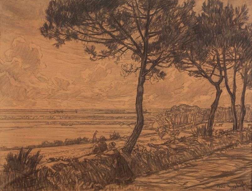 Fusain sur papier beige, marouflé sur toile, signé en bas à droite