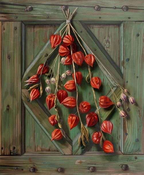 Phylasis et nigelles Huile sur toile, signée en bas à droite