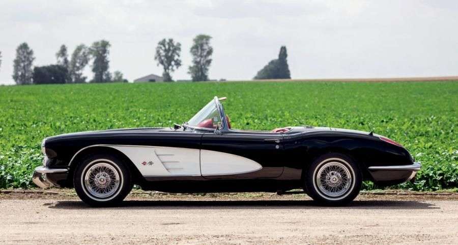 Elle est équipée d'un V8 de 283 ci (4,6 litres) développant 230 ch, accolé à une boîte manuelle quatre rapports comme il sied à ce modèle sportif. Comme c'était souvent le cas à l'époque, elle est habillée d'un thème bicolore, l'ensemble noir et blanc soulignant à merveille la ligne originale de ce modèle 1960. Il s'agit d'ailleurs d'un des millésimes les plus recherchés, avec sa calandre quatre phares et son arrière arrondi. Entretenue régulièrement et avec soin par son propriétaire aidé d'un ami mécanicien, cette voiture arbore un bel état de présentation. Son intérieur en skaï rouge et ses moquettes rouge, en bon état d'usage. Le compteur affiche un peu plus de 10 500 miles et la capote beige est en bon état. Avec son volant ajouré et sa rangée de compteurs ronds, le tableau de bord est évocateur de performances tout en répondant au style exubérant des années 1950. Il s'agit d'une voiture saine, parfaitement capable de s'insérer dans la circulation moderne, idéale pour profiter des routes secondaires au doux son de son puissant V8!