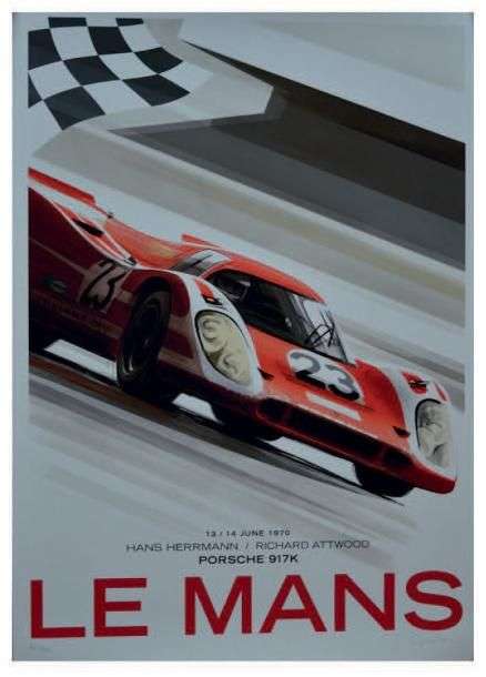 Affiche Le Mans / Porsche 917 K Numérotée 64/200 et signée par l'artiste