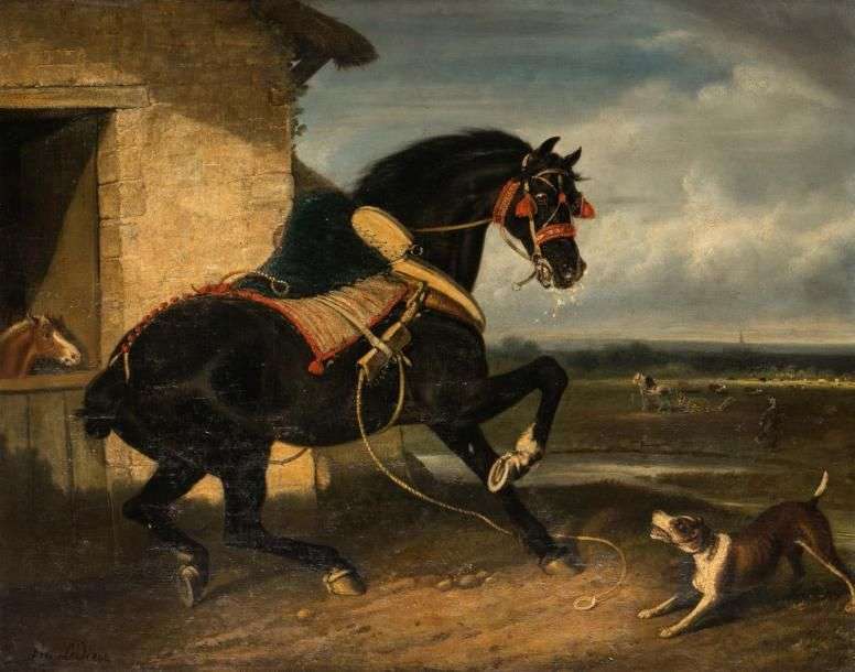 Cheval surpris par un chien