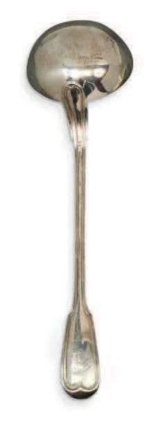 LOUCHE en argent chiffrée PB, modèle à filets.