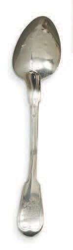 CUILLÈRE À RAGOÛT en argent armorié, modèle à filets.