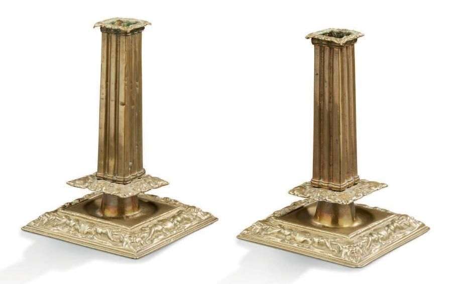 PAIRE DE BOUGEOIRS à la financière en laiton.
