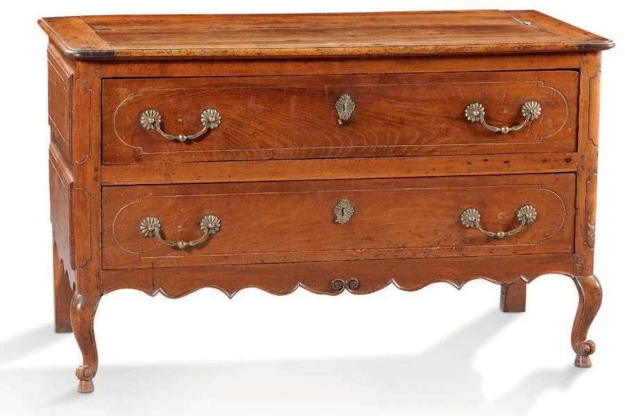 COMMODE RECTANGULAIRE en noyer ouvrant par deux tiroirs.