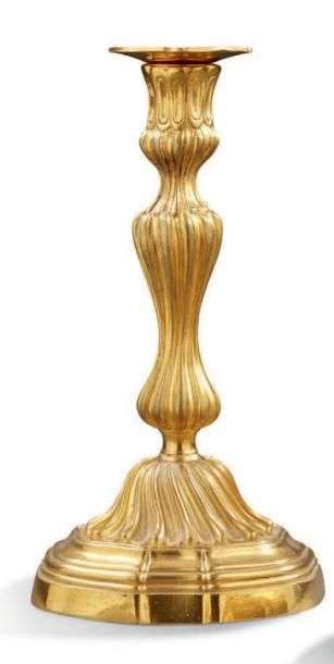 PAIRE DE FLAMBEAUX en bronze ciselé et doré à décor de côtes torses, base chantournée.