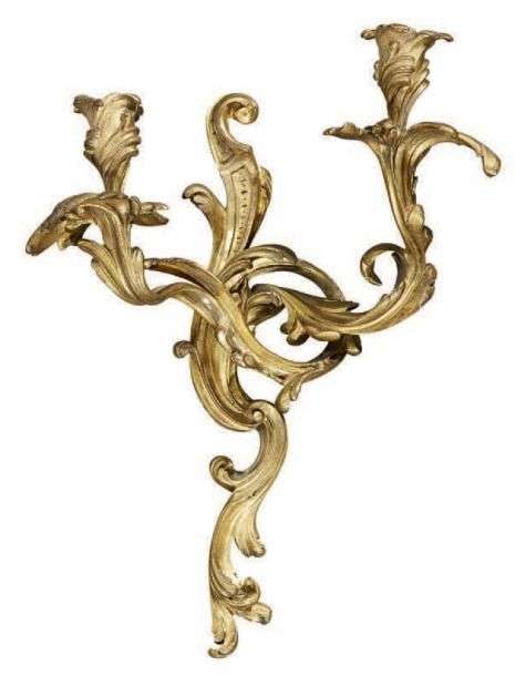 PAIRE D'APPLIQUES en bronze ciselé et doré à deux bras de lumière feuillag