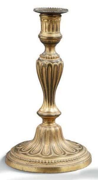 PAIRE DE BOUGEOIRS en bronze ciselé et doré, le fût à décor de godrons.