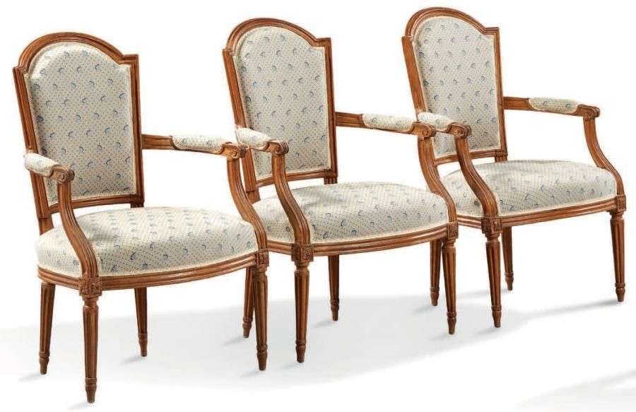 QUATRE FAUTEUILS à dossier cabriolet en hêtre mouluré et sculpté.