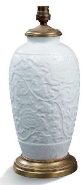 VASE en porcelaine blanc de Chine, à décor de fleurs et feuillages en reli