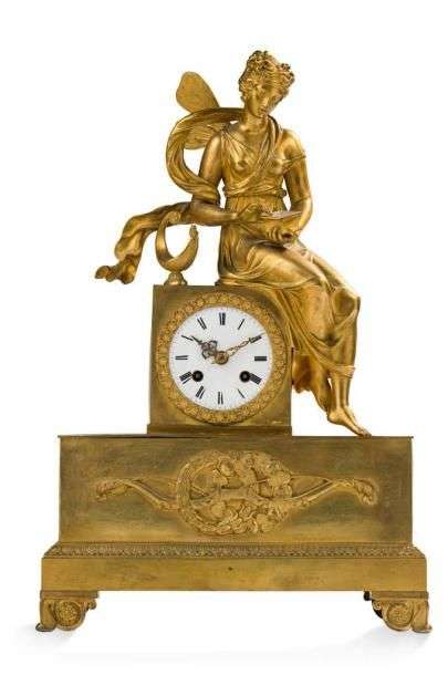 PENDULE en bronze ciselé et doré à décor d'une femme drapée à l'antique te