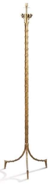 LAMPADAIRE en bronze ciselé et doré à décor feuillagé.