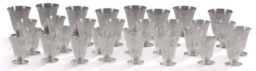 Partie de service de verres en cristal gravé modèle "Michel-Ange" comprenant:
