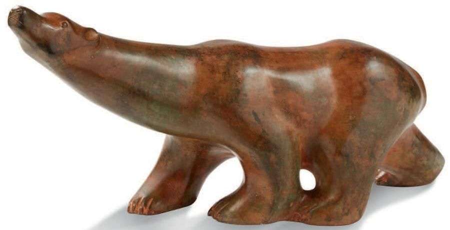 Epreuve en bronze à patine brune nuancée verte. Signée et cachet de fondeur.