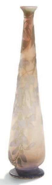 Vase oblong sur piédouche en verre doublé à décor de glycines. Signé. Vers 1920