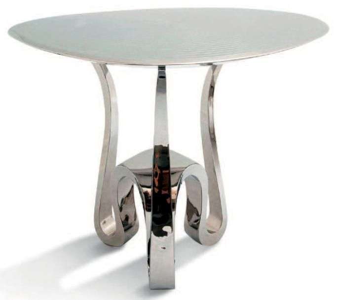 Inox poli miroir et plateau à spirale, signé d'un macaron sous le plateau et numéroté