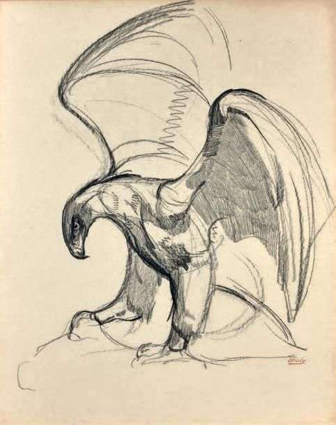 Aigle Dessin au fusain, signé en bas à droite
