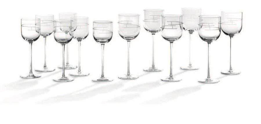 Service de verres en cristal à filets, composé de six verres à eau et six verres à vin