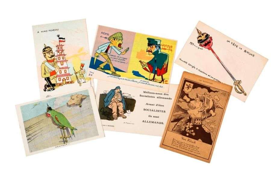 Environ 85 cartes patriotiques , caricatures dont séries en pochettes