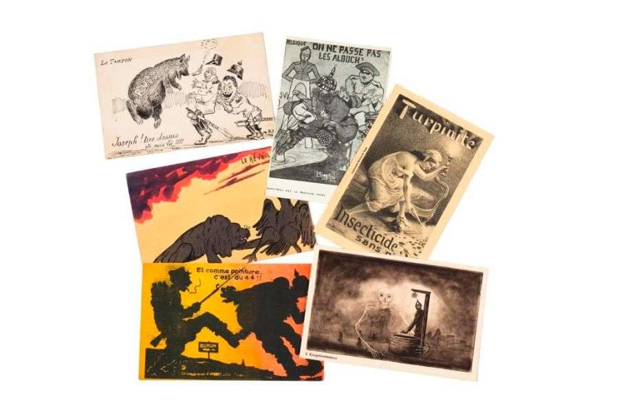 Environ 125 cartes patriotiques , caricatures dont les 4 pochettes completes « Sonnets Illustrés »