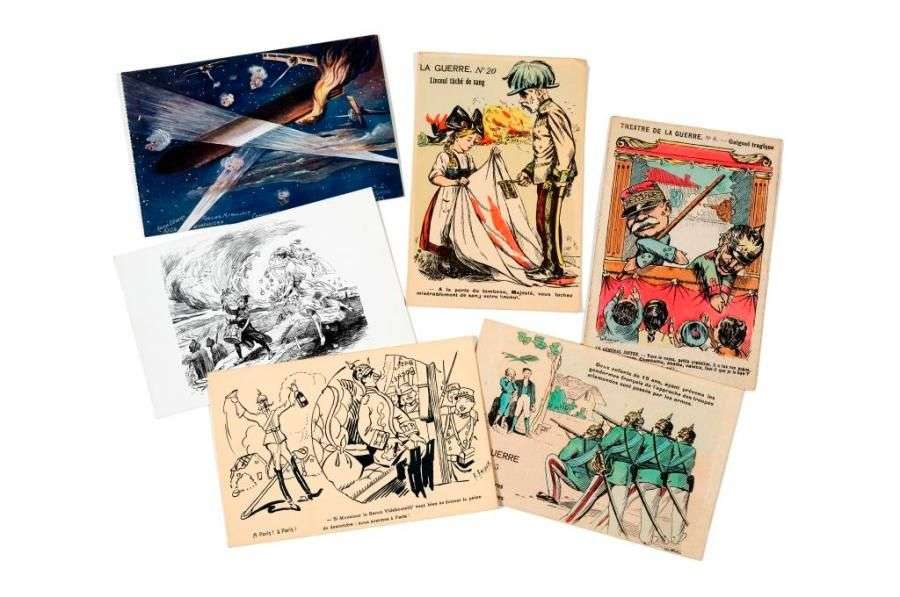 Environ 170 cartes patriotiques , caricatures, série « La Guerre »