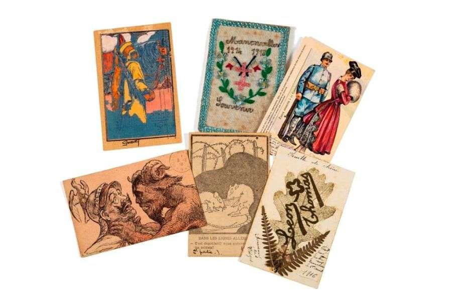 Environ 130 cartes avec illustrations , collages, broderies…