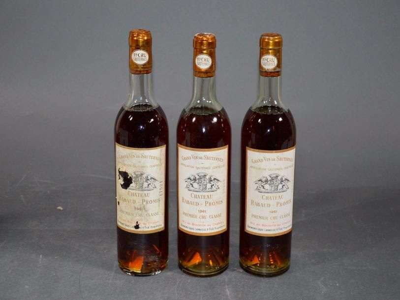 3 B CHÂTEAU RABAUD PROMIS (M.E.+| 2 e.t.h. et 1 e.t.a| 1 c.c. et 1 capsule plissée sommet) CC1 Sauternes 1961