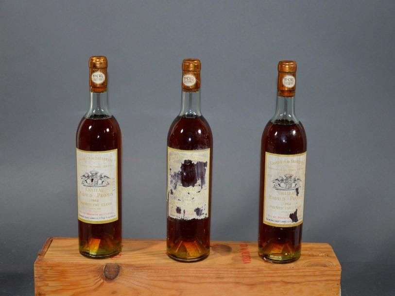 3 B CHÂTEAU RABAUD PROMIS (1 H.E.+| 1 H.E. et 1 H.E.-| 1 e.t.h| 1 e.t.a. et 1 e.q.i| c.s.) CC1 Sauternes 1962