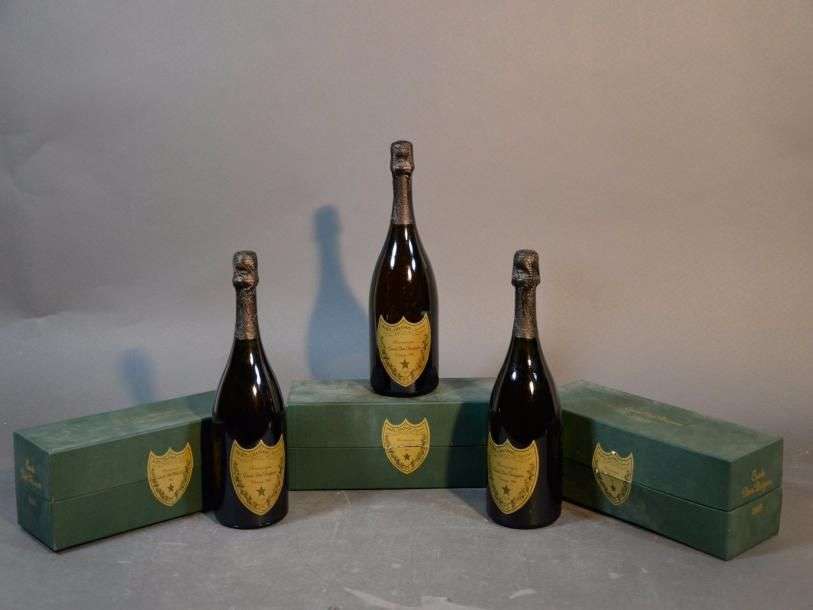 3 B CHAMPAGNE DOM PÉRIGNON (Coffrets légèrement abimés) 1 accroc léger éti