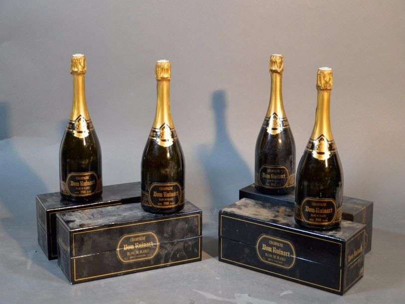 4 B CHAMPAGNE DOM RUINART (Coffrets légèrement sales) bdeblanc 1988