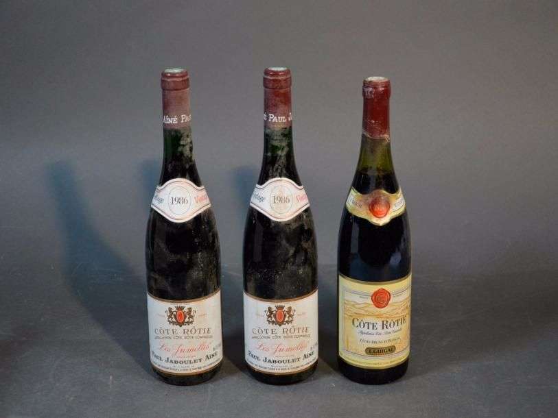 2 B CÔTE RÔTIE LES JUMELLES (2,5 cm| e.l.s| clm.s.) Jaboulet Ainé 19861 B CÔTE RÔTIE (3,5 cm| clm.s| c.s.) Guigal 1989