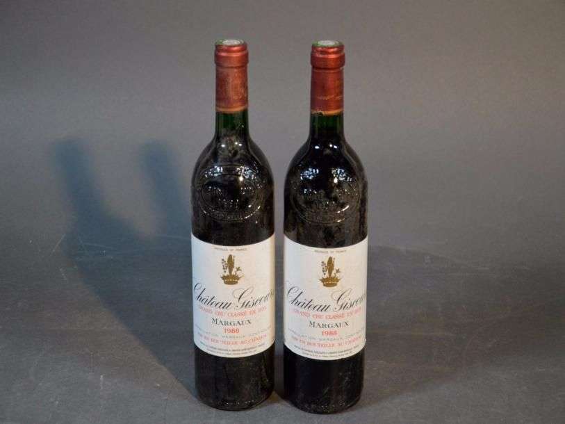 2 B CHÂTEAU GISCOURS (e.t.h. légères| accrocs sur 1 bas capsule) GCC3 Margaux 1988