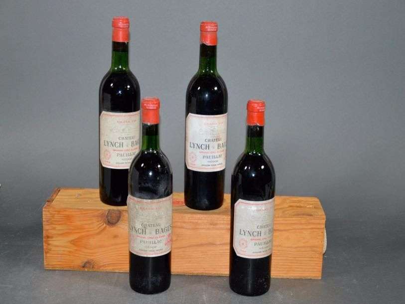 4 B CHÂTEAU LYNCH BAGES (2 T.L.B| 1 T.L.B.- et 1 H.E.+| e.t.h. dont 1 e.a| quelques accrocs bas de jupes) GCC5 Pauillac 1966