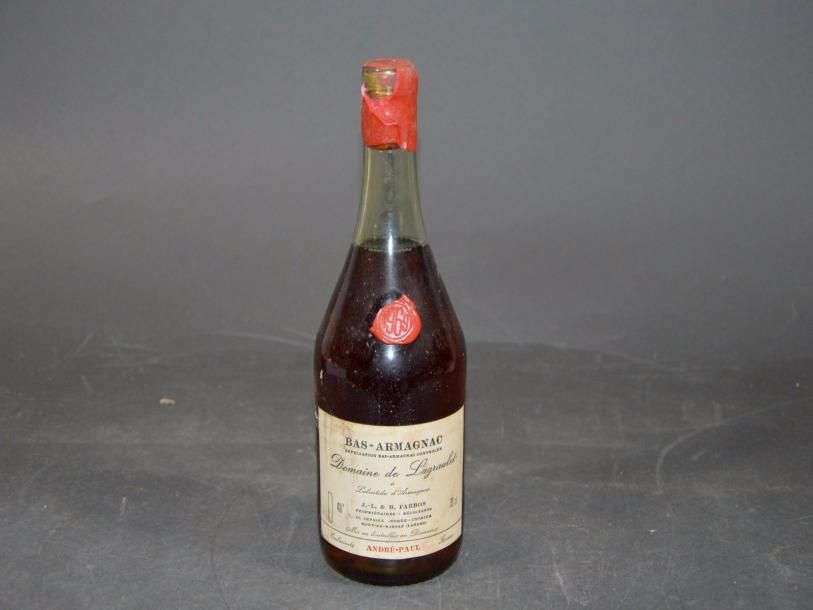 1 B BAS-ARMAGNAC EXCLUSIVITÉ ANDRÉ PAUL 70 Cl 48° (4,7 cm| e.t.h. légères à e.l.a| caspule cire abimée) Domaine de Lagraulet 1969