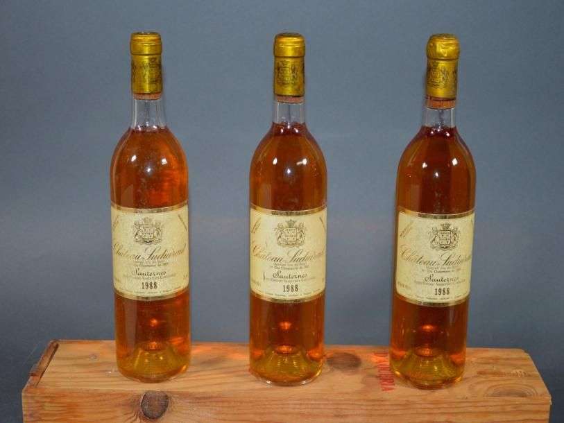 3 B CHÂTEAU SUDUIRAUT (2 B.G| 1 T.L.B.+| e.t.h| 1 capsule gonflée) CC1 Sauternes 1988