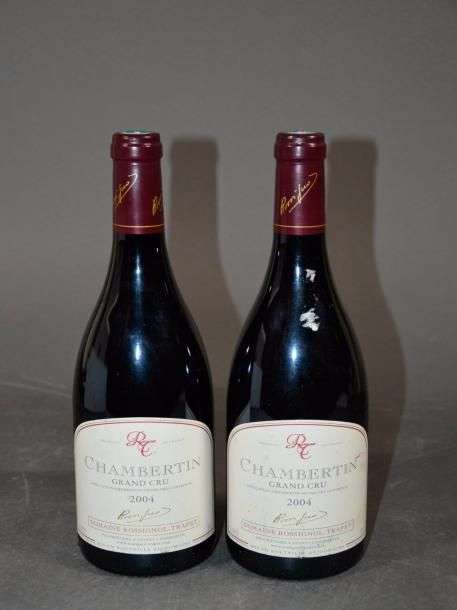 2 B CHAMBERTIN (Grand Cru) quelques marques et accrocs légers étiquettes Rossignol-Trapet 2004