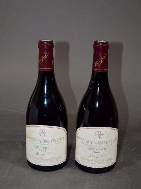2 B GEVREY-CHAMBERTIN CLOS PRIEUR (1er Cru) quelques marques et accrocs étiquettes Rossignol-Trapet 2001