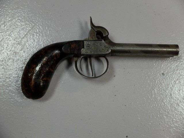 Pistolet liégeois, double à percussion, à balles forcées. Canons ronds ent